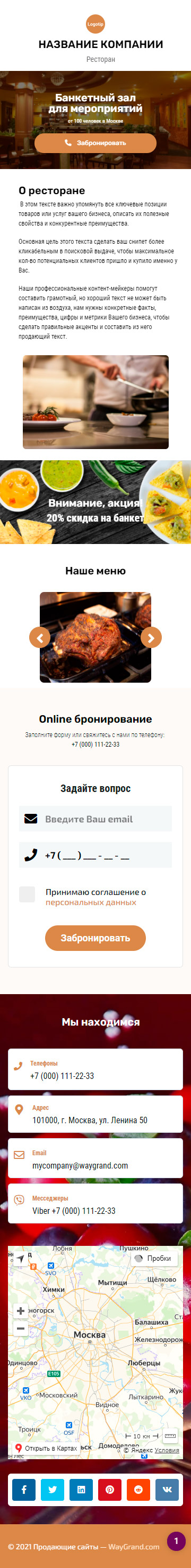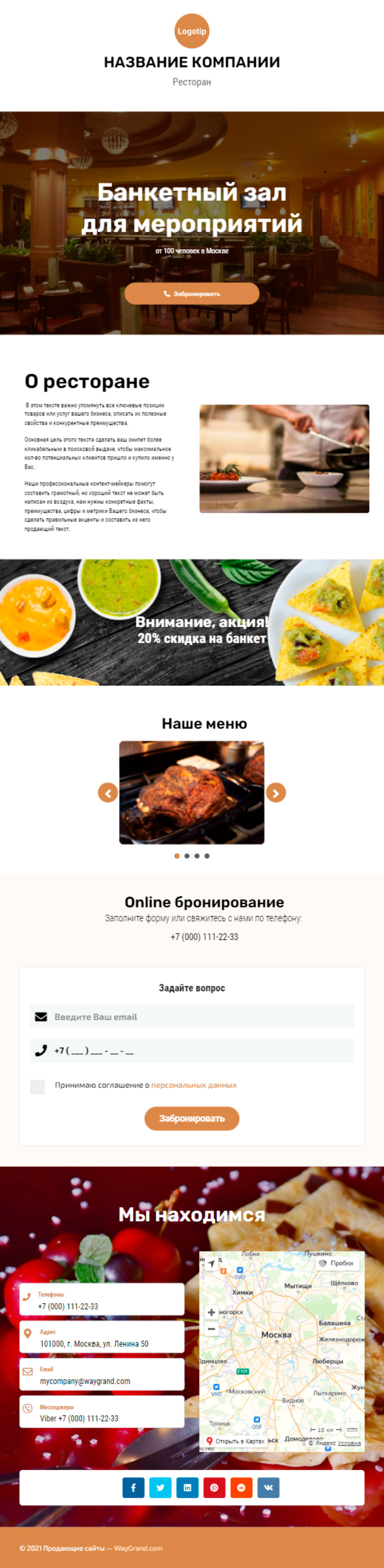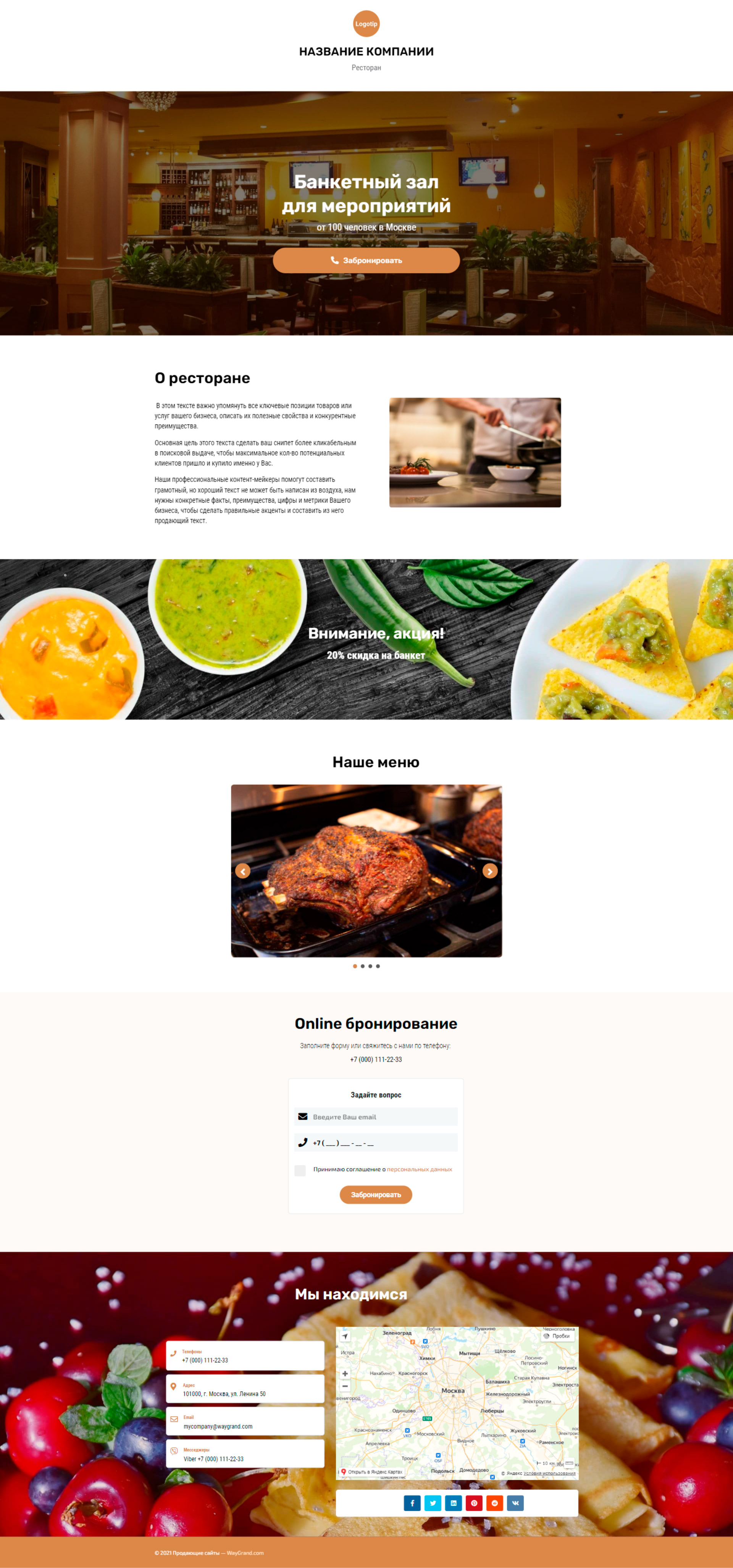 Закажите готовый продающий сайт визитка #0449101 в Тамбове за 5-7 дня «под ключ»: свёрстан, отрисован и готов к рекламе. Тематика шаблона «Банкетный зал для мероприятий».