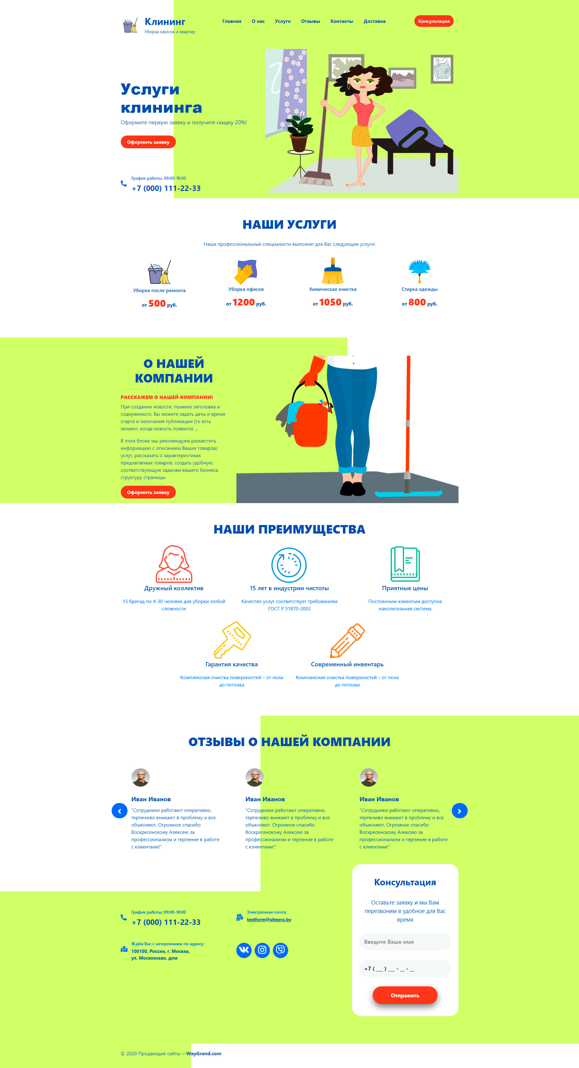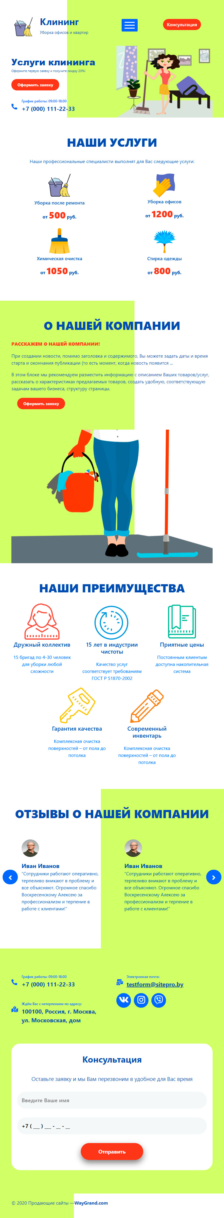 Закажите готовый продающий сайт лендинг #0628202 в Тамбове за 1-3 дня «под ключ»: свёрстан, отрисован и готов к рекламе. Тематика шаблона «Услуги клининга».