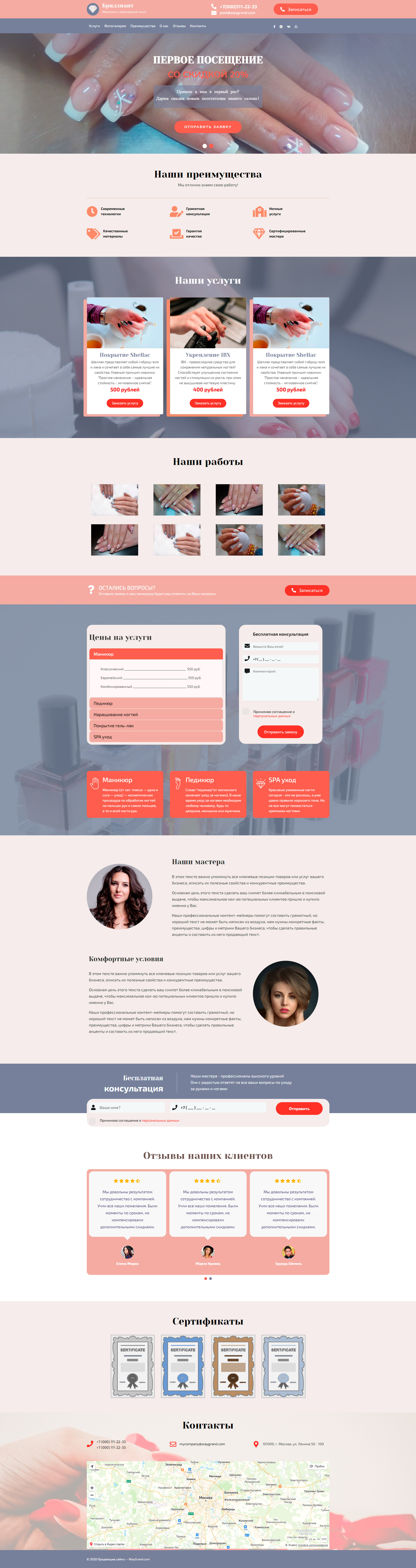 Закажите готовый продающий сайт лендинг #1107201 в Тамбове за 1-3 дня «под ключ»: свёрстан, отрисован и готов к рекламе. Тематика шаблона «Салон маникюра и педикюра».