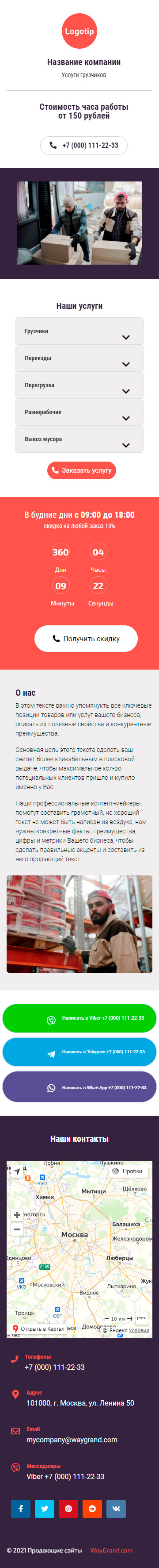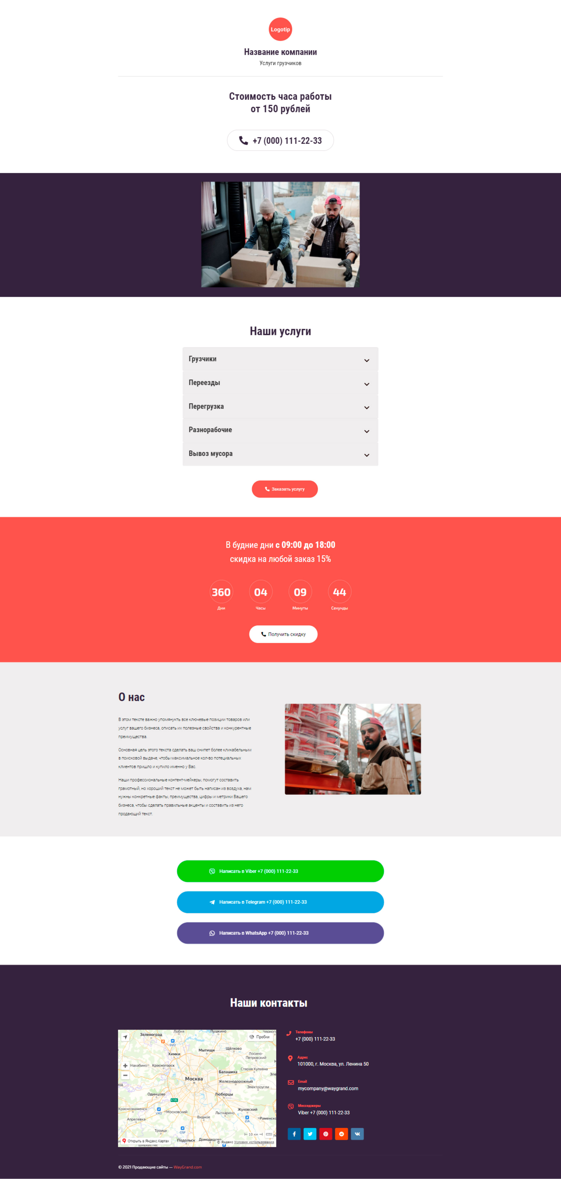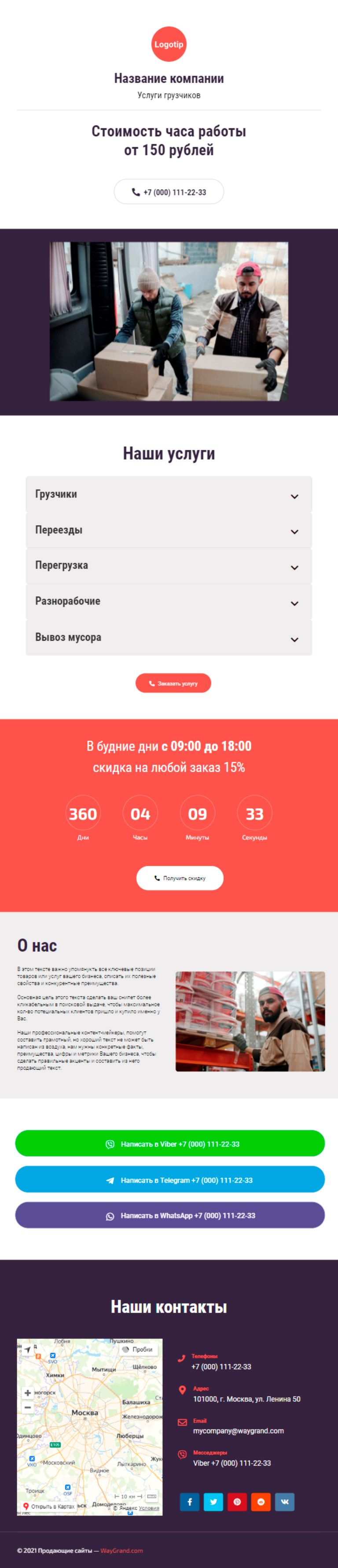 Закажите готовый продающий сайт визитка #2562101 в Тамбове за 5-7 дня «под ключ»: свёрстан, отрисован и готов к рекламе. Тематика шаблона «Услуги грузчиков».