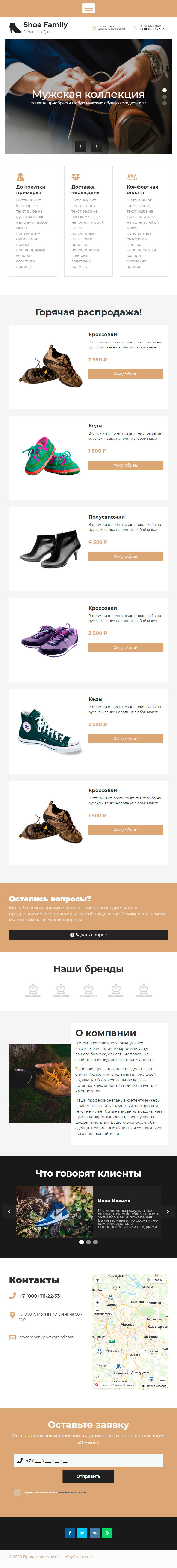 Закажите готовый продающий сайт лендинг #1517201 в Тамбове за 1-3 дня «под ключ»: свёрстан, отрисован и готов к рекламе. Тематика шаблона «Обувь».
