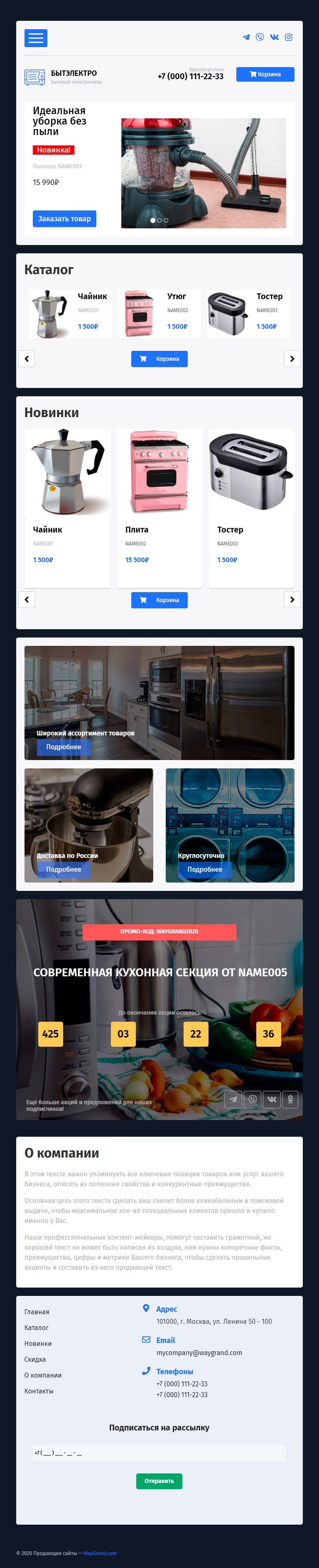 Закажите готовый продающий сайт лендинг #0703202 в Тамбове за 1-3 дня «под ключ»: свёрстан, отрисован и готов к рекламе. Тематика шаблона «Продажа бытовой электроники».