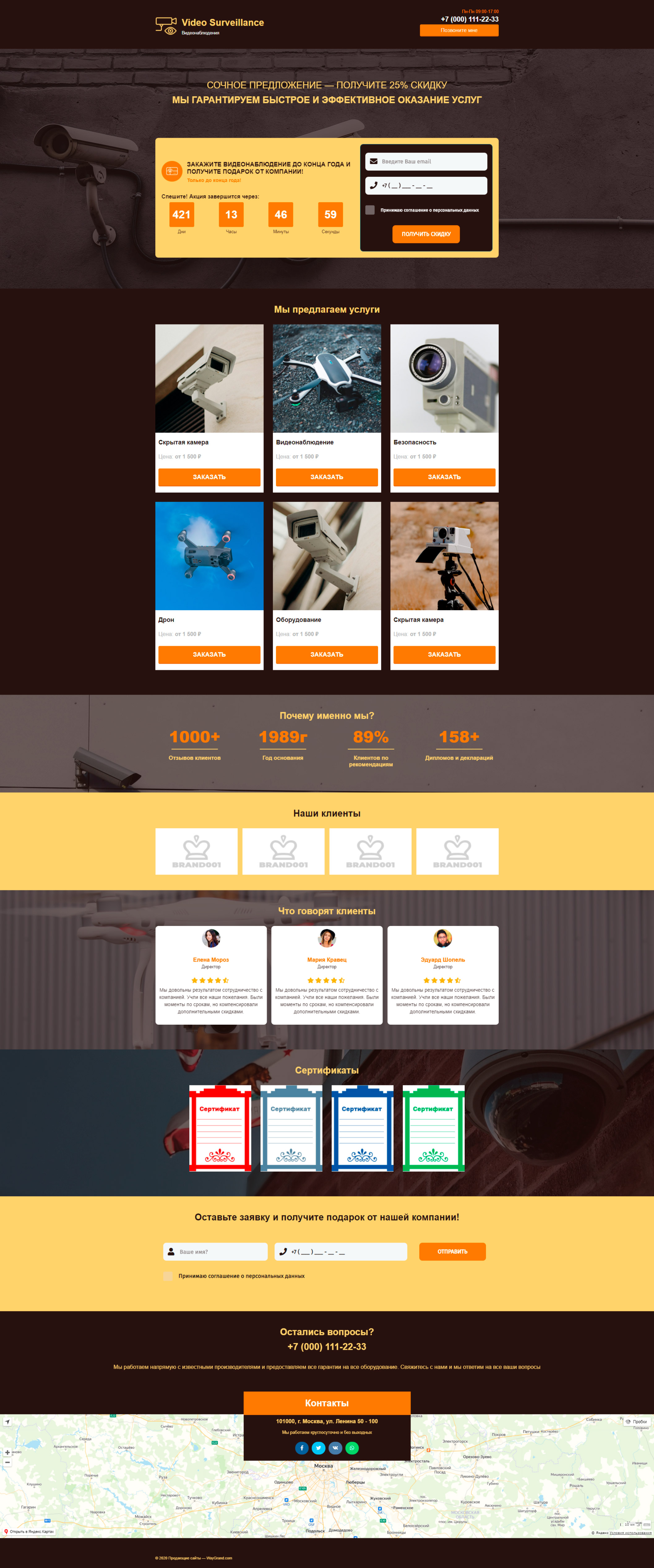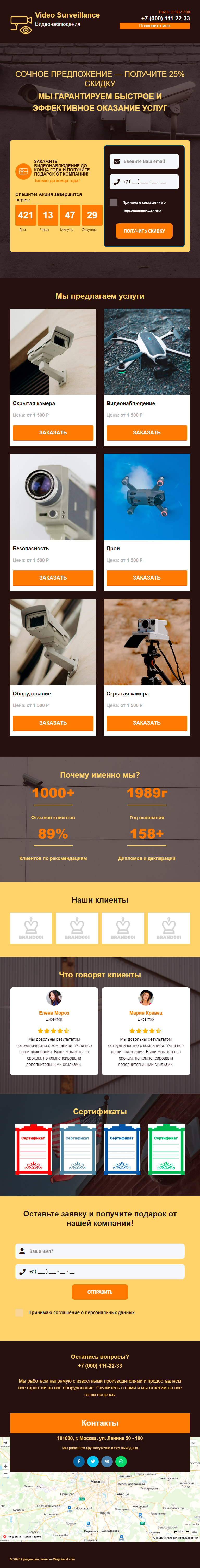 Закажите готовый продающий сайт лендинг #1609203 в Тамбове за 1-3 дня «под ключ»: свёрстан, отрисован и готов к рекламе. Тематика шаблона «Видеонаблюдение».
