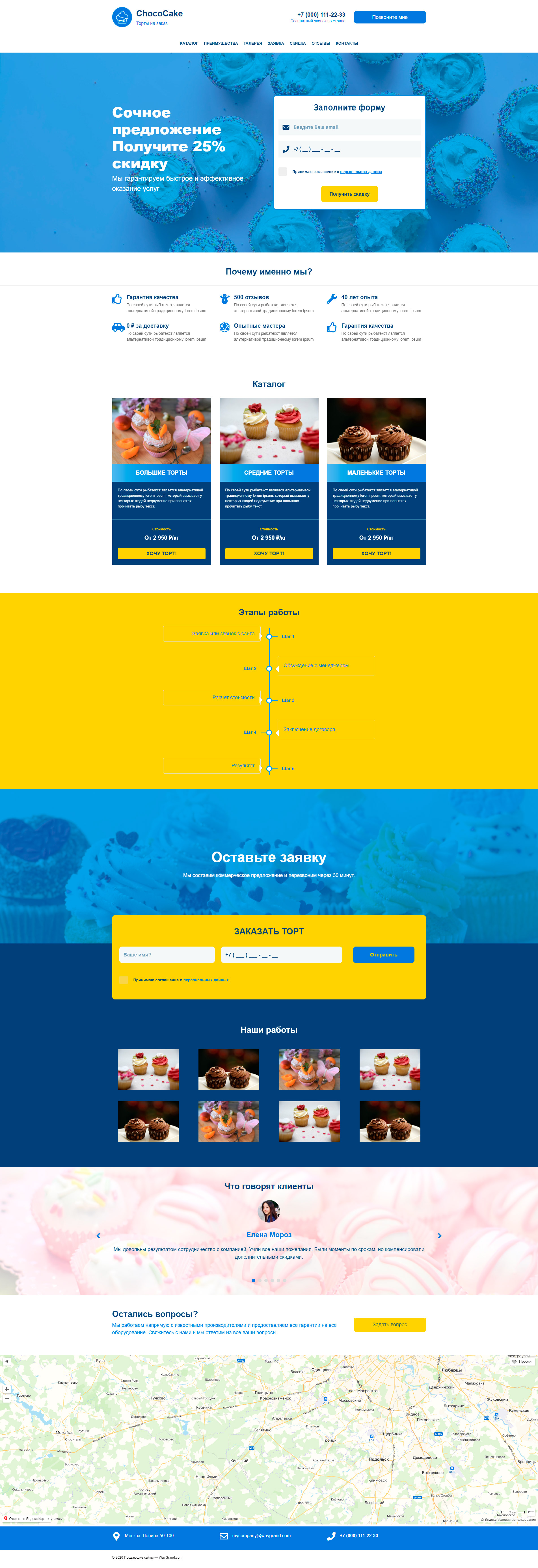 Закажите готовый продающий сайт лендинг #1711205 в Тамбове за 1-3 дня «под ключ»: свёрстан, отрисован и готов к рекламе. Тематика шаблона «Торты на заказ».