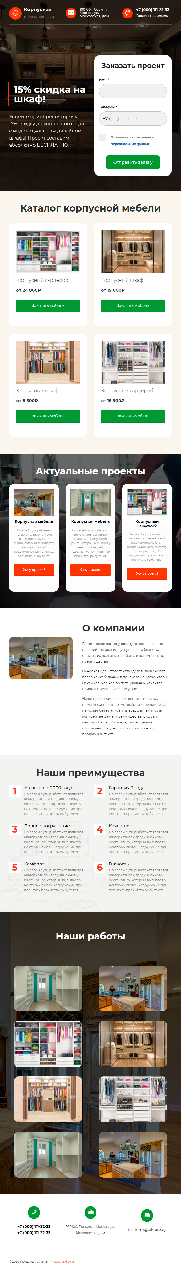 Закажите готовый продающий сайт лендинг #0915204 в Тамбове за 1-3 дня «под ключ»: свёрстан, отрисован и готов к рекламе. Тематика шаблона «Корпусная мебель».