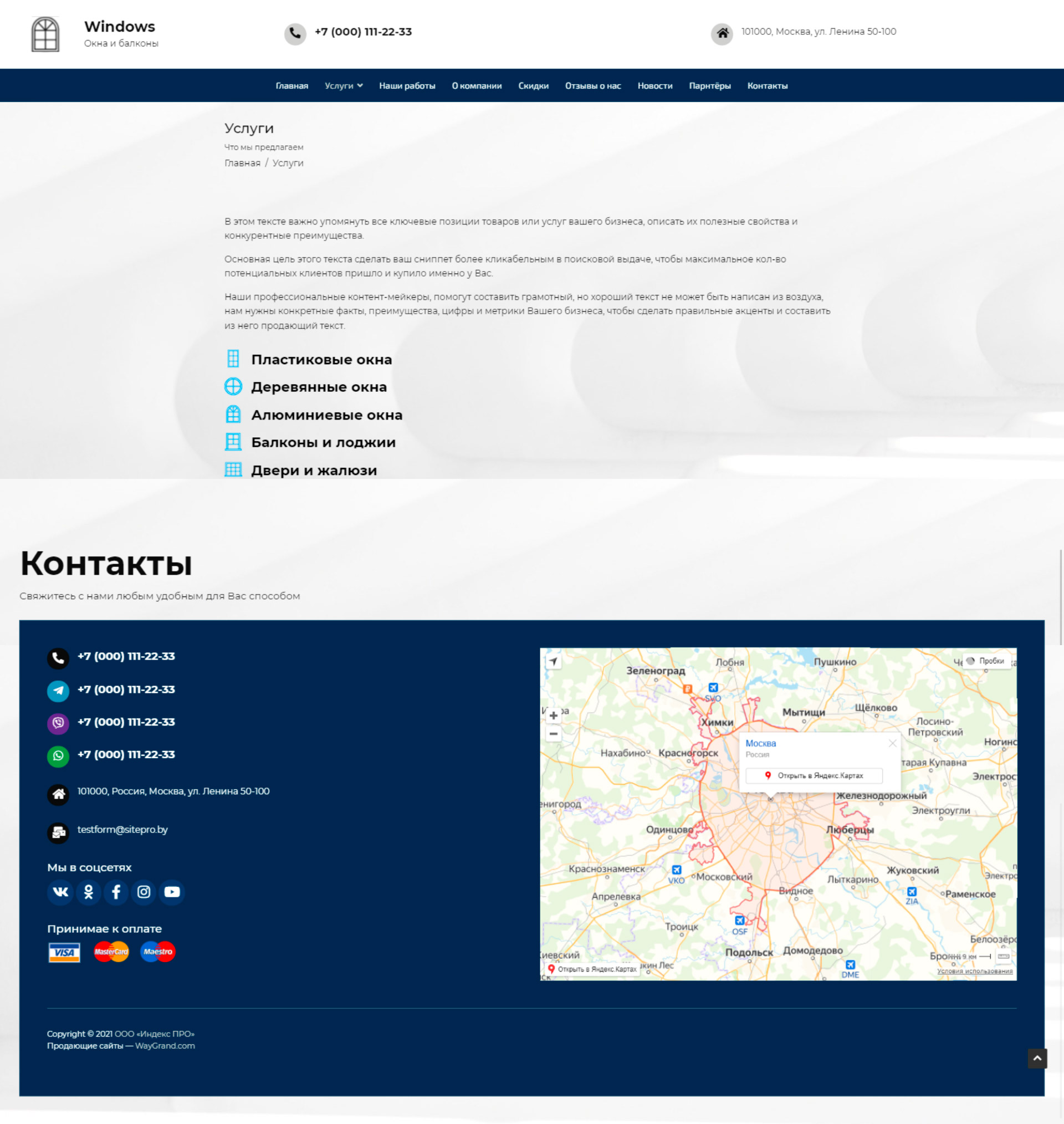 - Страница "Контакты"
