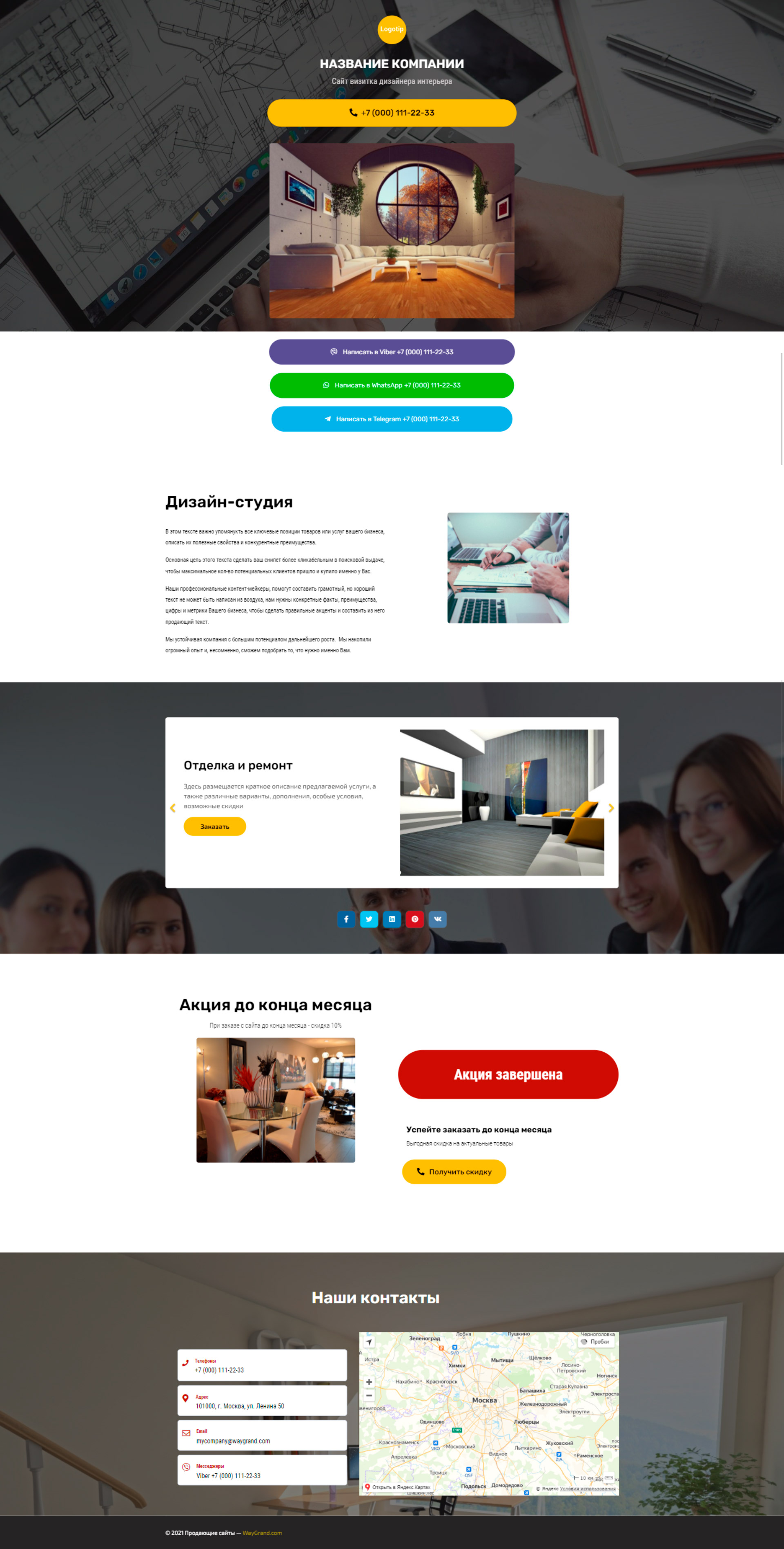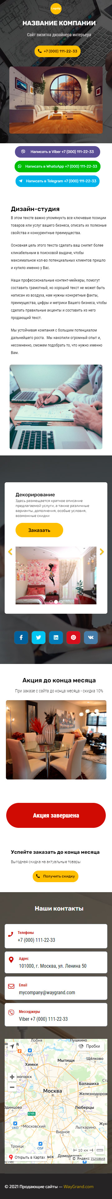 Закажите готовый продающий сайт визитка #2124101 в Тамбове за 5-7 дня «под ключ»: свёрстан, отрисован и готов к рекламе. Тематика шаблона «Дизайн интерьеров».