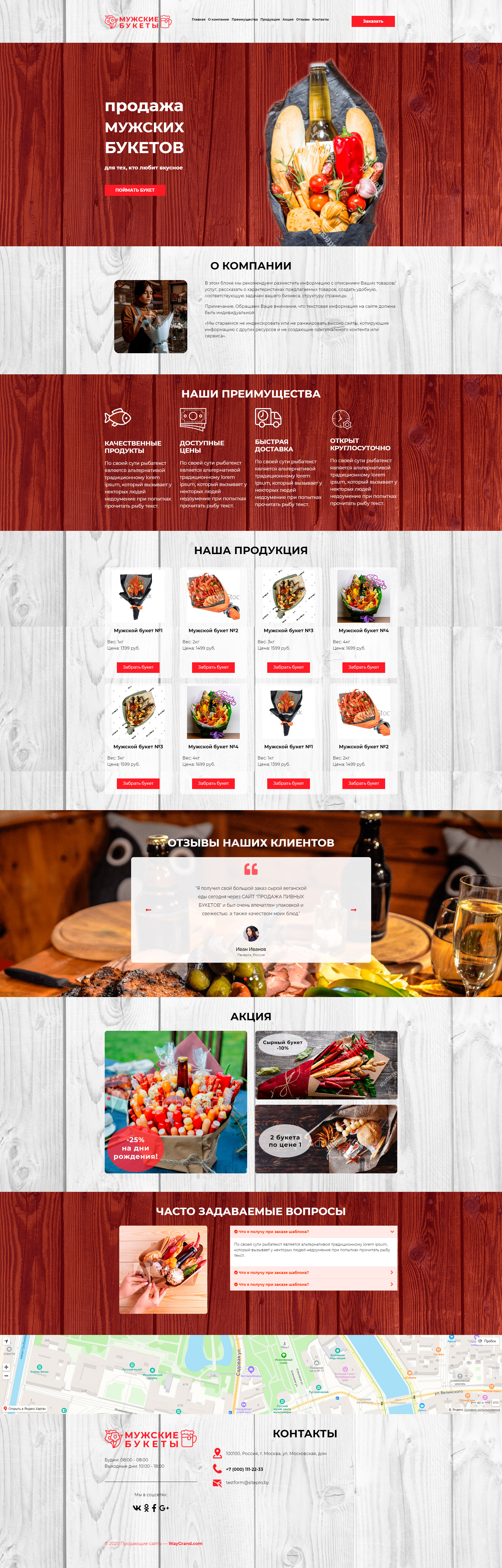 Закажите готовый продающий сайт лендинг #2404204 в Тамбове за 1-3 дня «под ключ»: свёрстан, отрисован и готов к рекламе. Тематика шаблона «Мужские букеты».