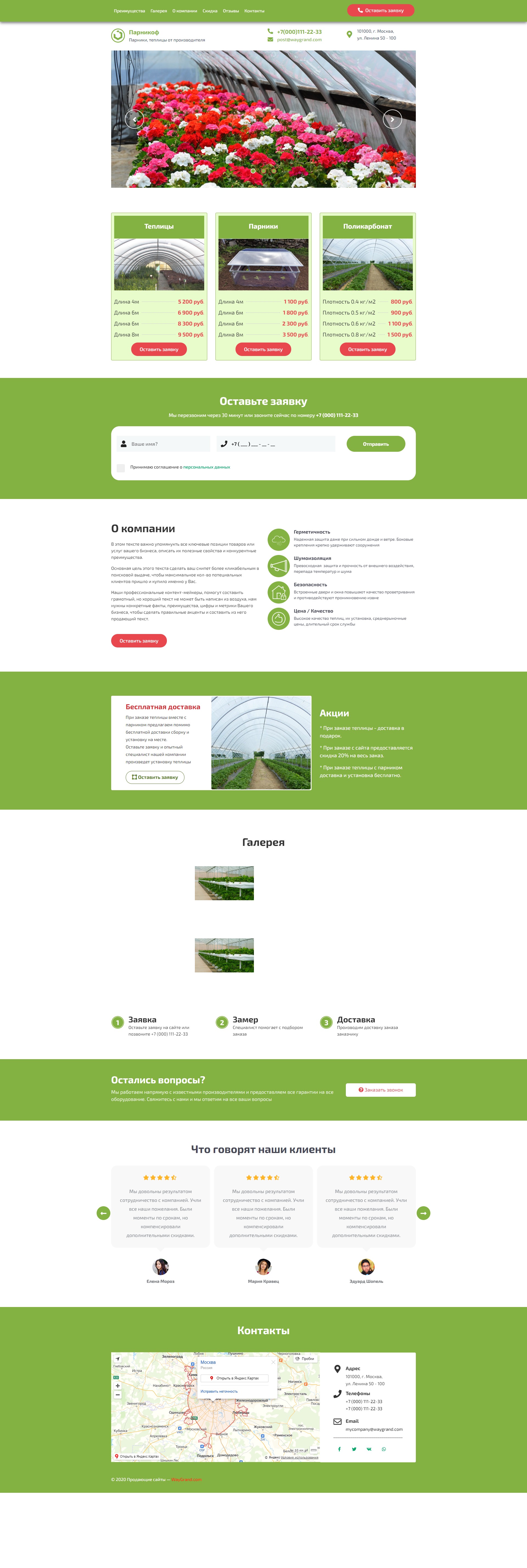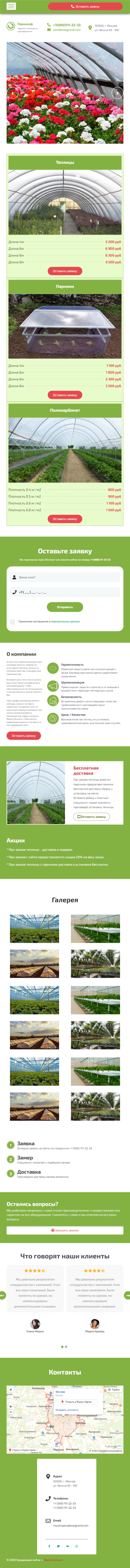 Закажите готовый продающий сайт лендинг #2624202 в Тамбове за 1-3 дня «под ключ»: свёрстан, отрисован и готов к рекламе. Тематика шаблона «Парники и теплицы».