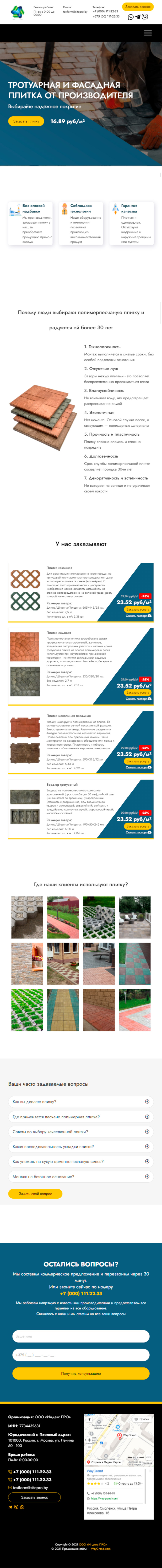 Закажите готовый продающий сайт лендинг #2055202 в Тамбове за 1-3 дня «под ключ»: свёрстан, отрисован и готов к рекламе. Тематика шаблона «Тротуарная плитка».