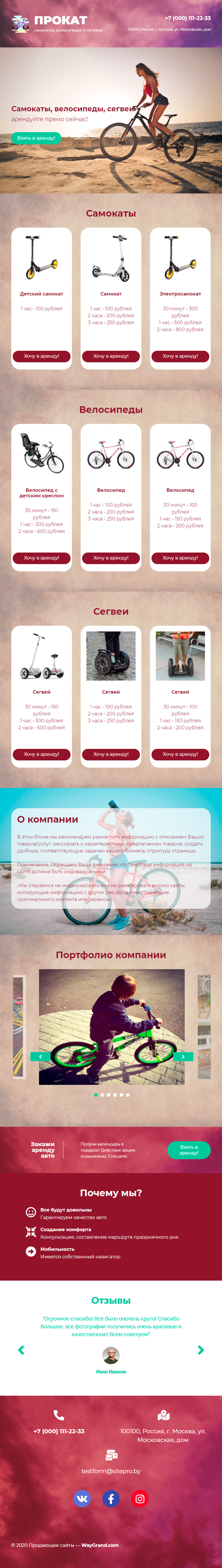 Закажите готовый продающий сайт лендинг #1907201 в Тамбове за 1-3 дня «под ключ»: свёрстан, отрисован и готов к рекламе. Тематика шаблона «Прокат самокатов и велосипедов».