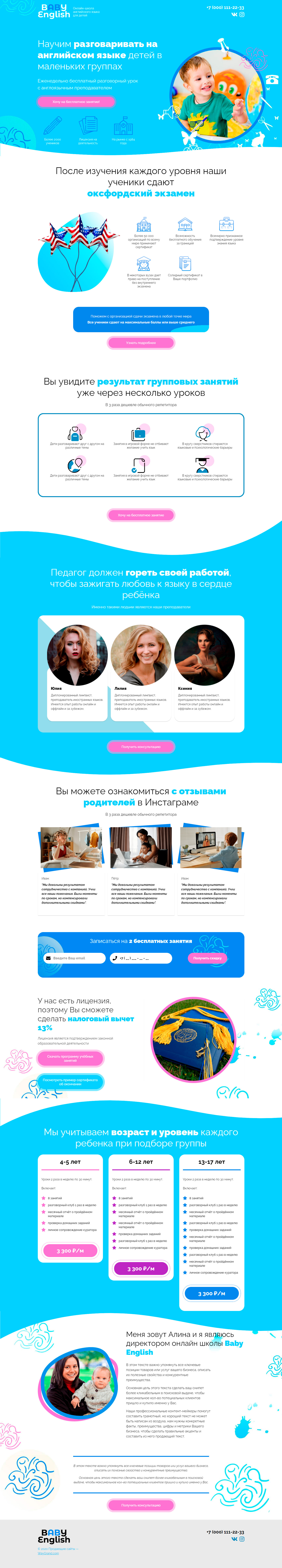 Закажите готовый продающий сайт лендинг #3172201 в Тамбове за 1-3 дня «под ключ»: свёрстан, отрисован и готов к рекламе. Тематика шаблона «Английский для детей».