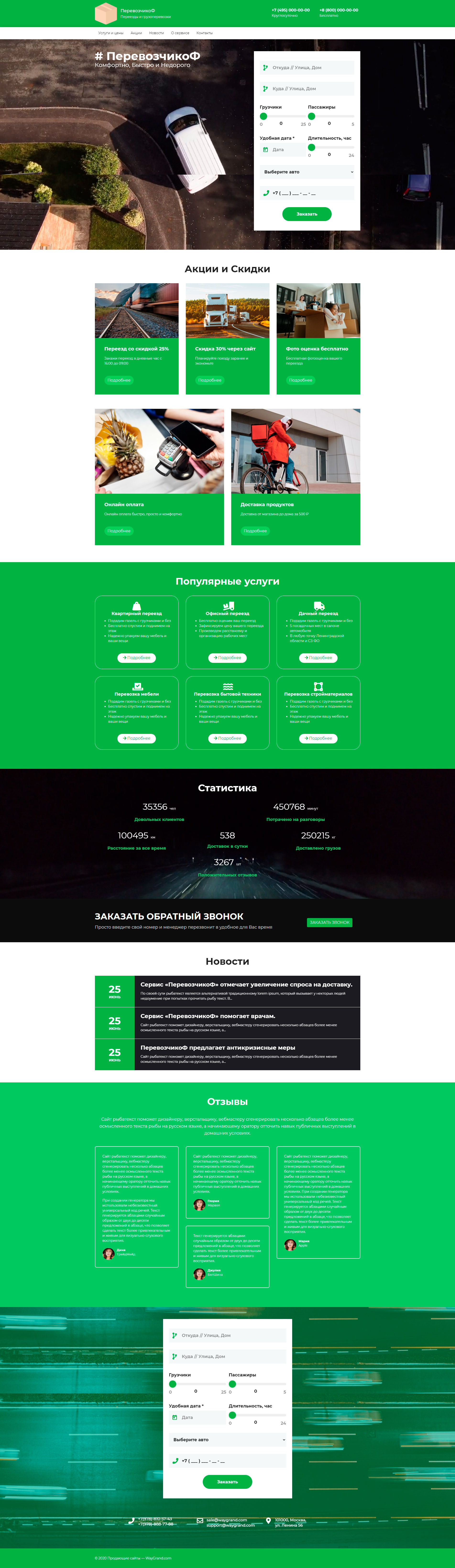 Закажите готовый продающий сайт лендинг #2515201 в Тамбове за 1-3 дня «под ключ»: свёрстан, отрисован и готов к рекламе. Тематика шаблона «Перевозчики».