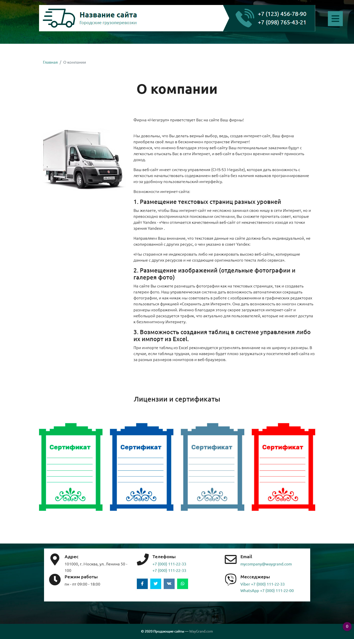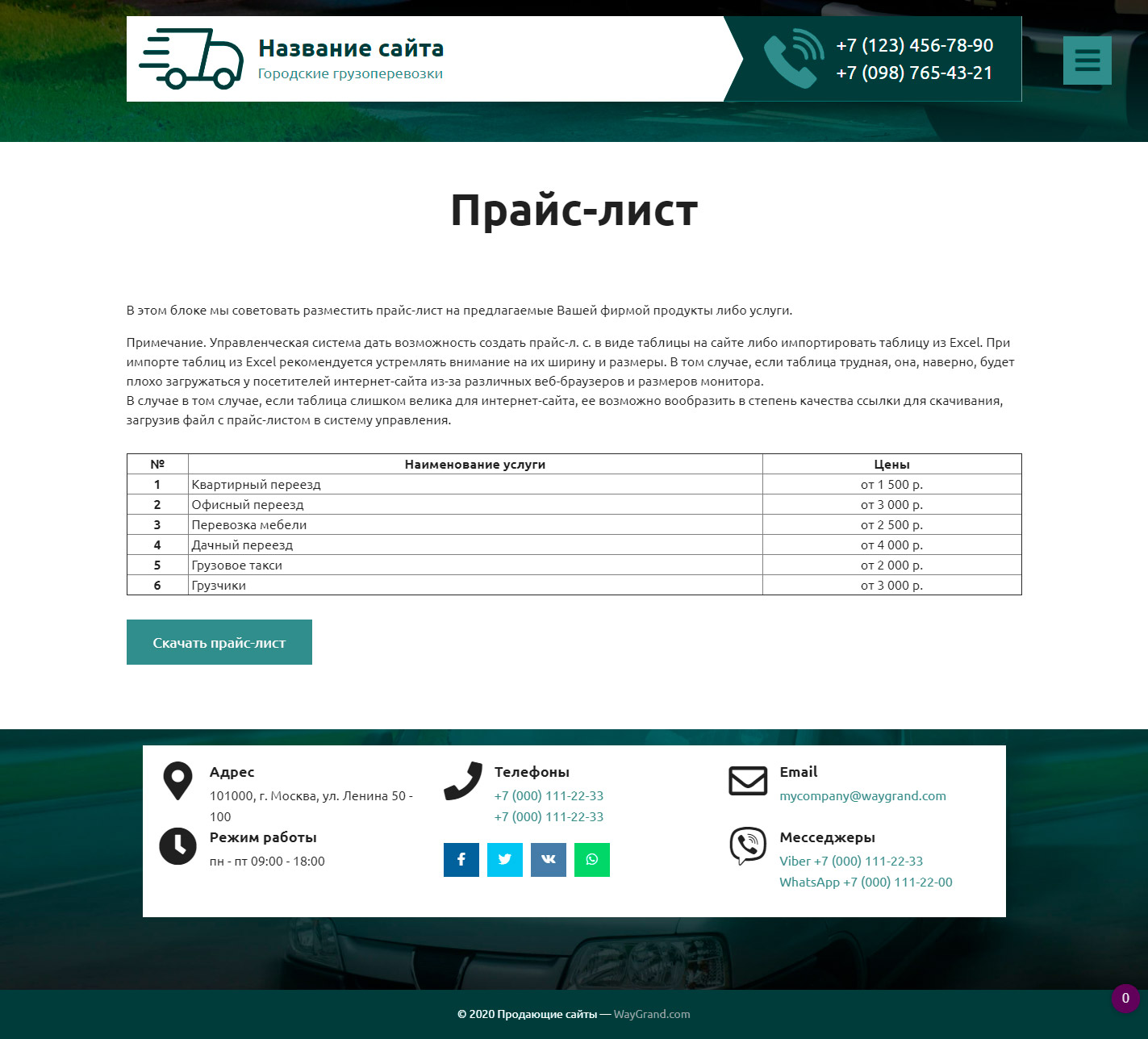 Закажите готовый продающий сайт визитка #2515302 в Тамбове за 5-7 дня «под ключ» по доступным ценам на WayGrand: свёрстан, отрисован и готов к рекламе. Тематика шаблона «Городские грузоперевозки».