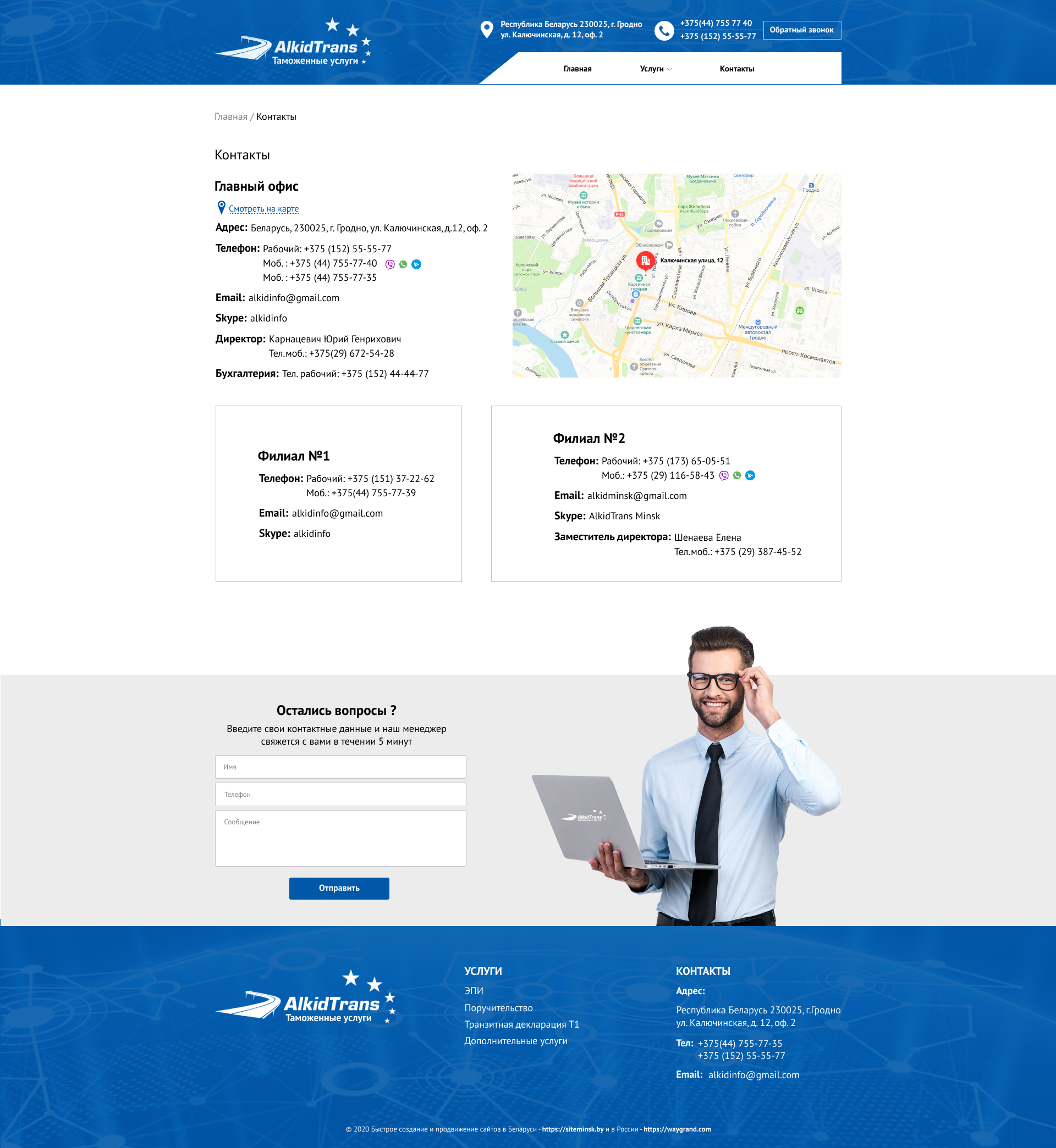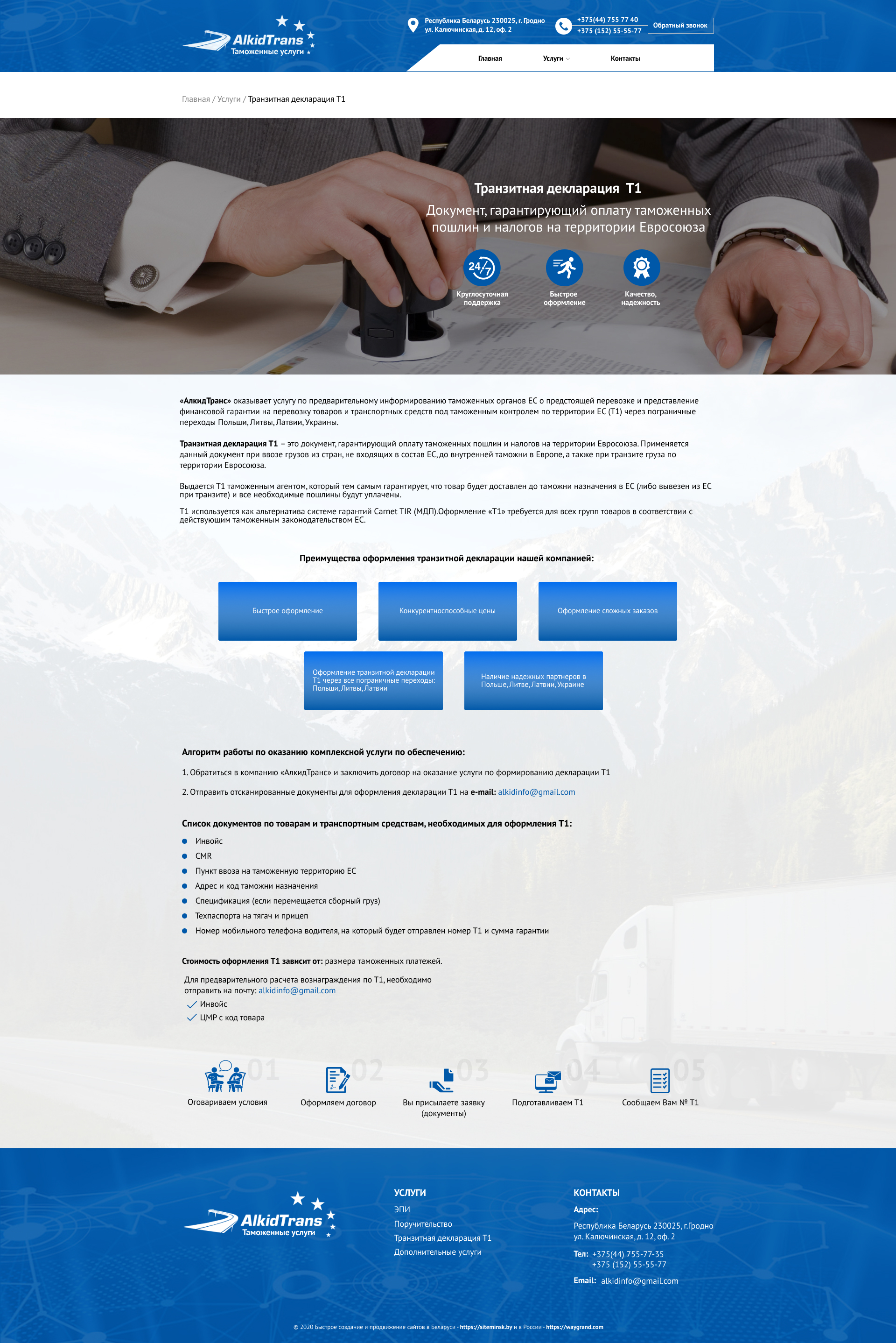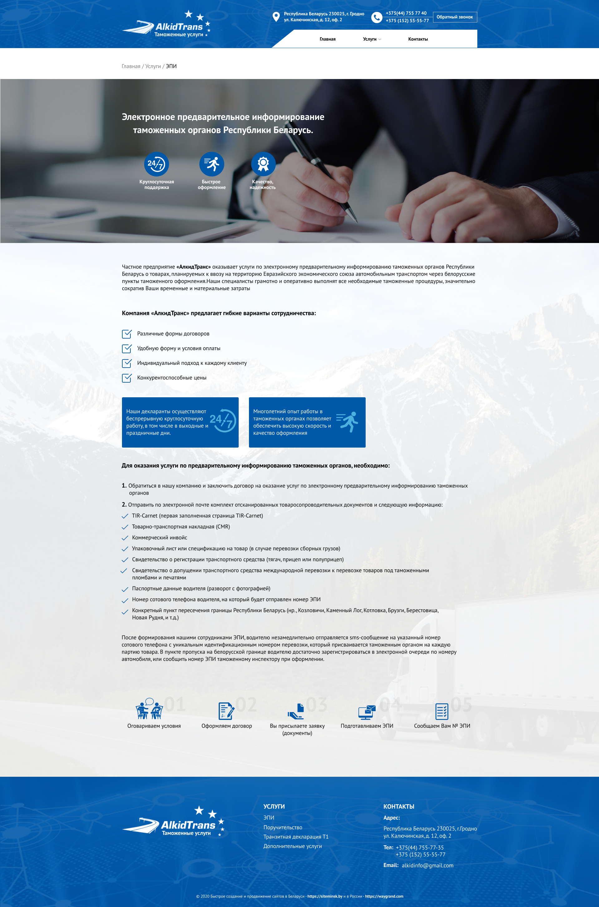 Закажите готовый продающий сайт визитка #234 в Тамбове за 5-7 дня «под ключ»: свёрстан, отрисован и готов к рекламе. Тематика шаблона «Таможенные услуги».