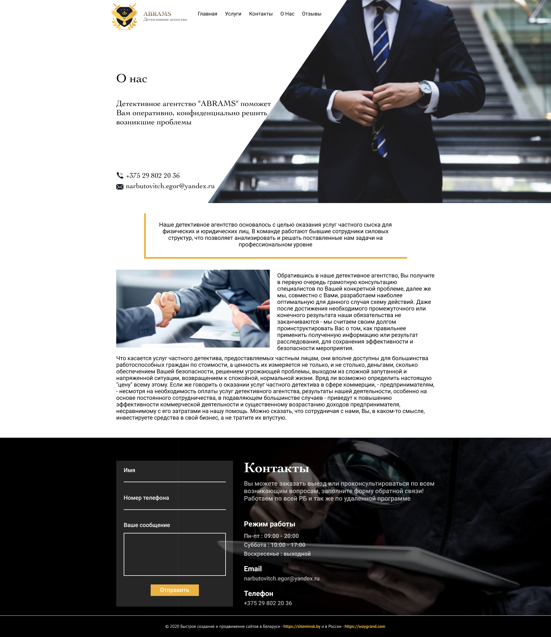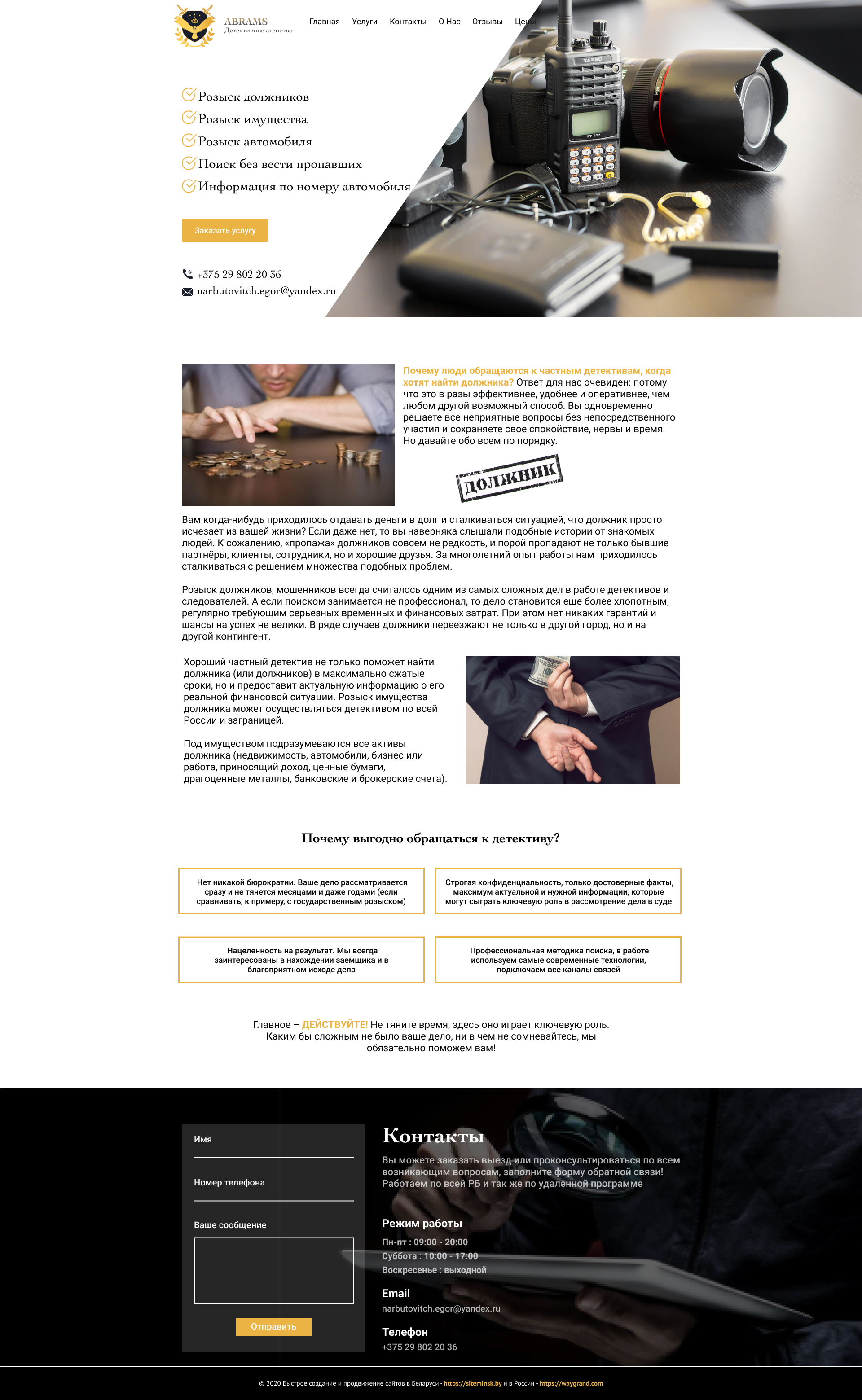 Закажите готовый продающий сайт визитка #239 в Тамбове за 5-7 дня «под ключ»: свёрстан, отрисован и готов к рекламе. Тематика шаблона «Частное детективное агентство».
