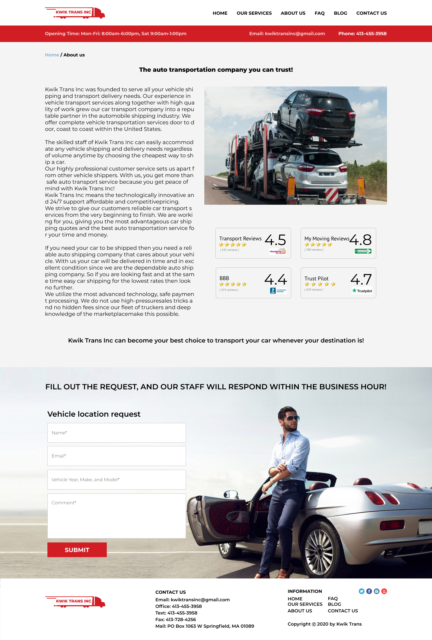 Закажите готовый продающий сайт визитка #223 в Тамбове за 5-7 дня «под ключ»: свёрстан, отрисован и готов к рекламе. Тематика шаблона «Safe & Reliable National Auto Transport».